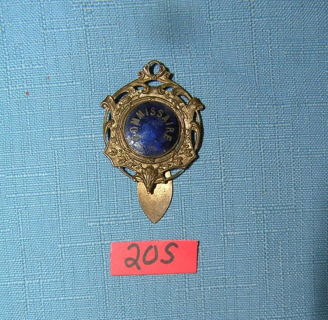 Antique brass and blue enamel commissaire badge circa early 1900's est. value $150.00-$200.00
