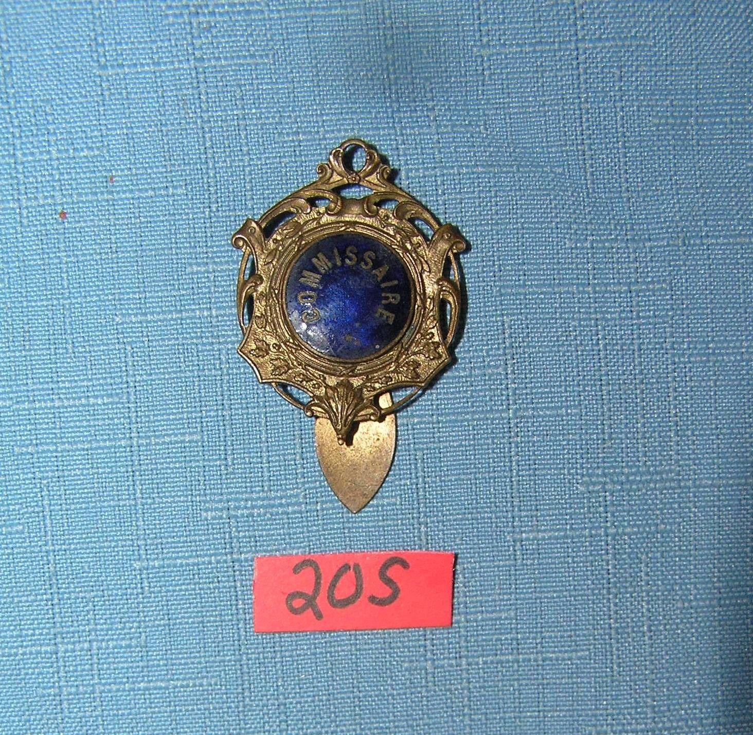 Antique brass and blue enamel commissaire badge circa early 1900's est. value $150.00-$200.00