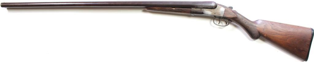 Antique double barrel shotgun marked Chicago Long Range Wonder, 12 ga. with 32" barrels and walnut stocks. Good original condition including action and bore. marked Chicago Long Range Wonder, 12 ga. with 32" barrels and walnut stocks. Good original condition including action and bore.