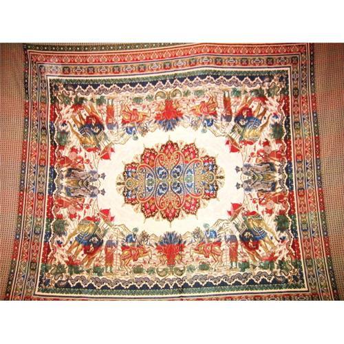 </font></strong>Beautiful Table clothe made in Silk with the King riding Elephants for Tiger Hunting day with his servants,beautiful bright colors and in a very good condition, could be use as a table clothe or a bed day cover.</font>