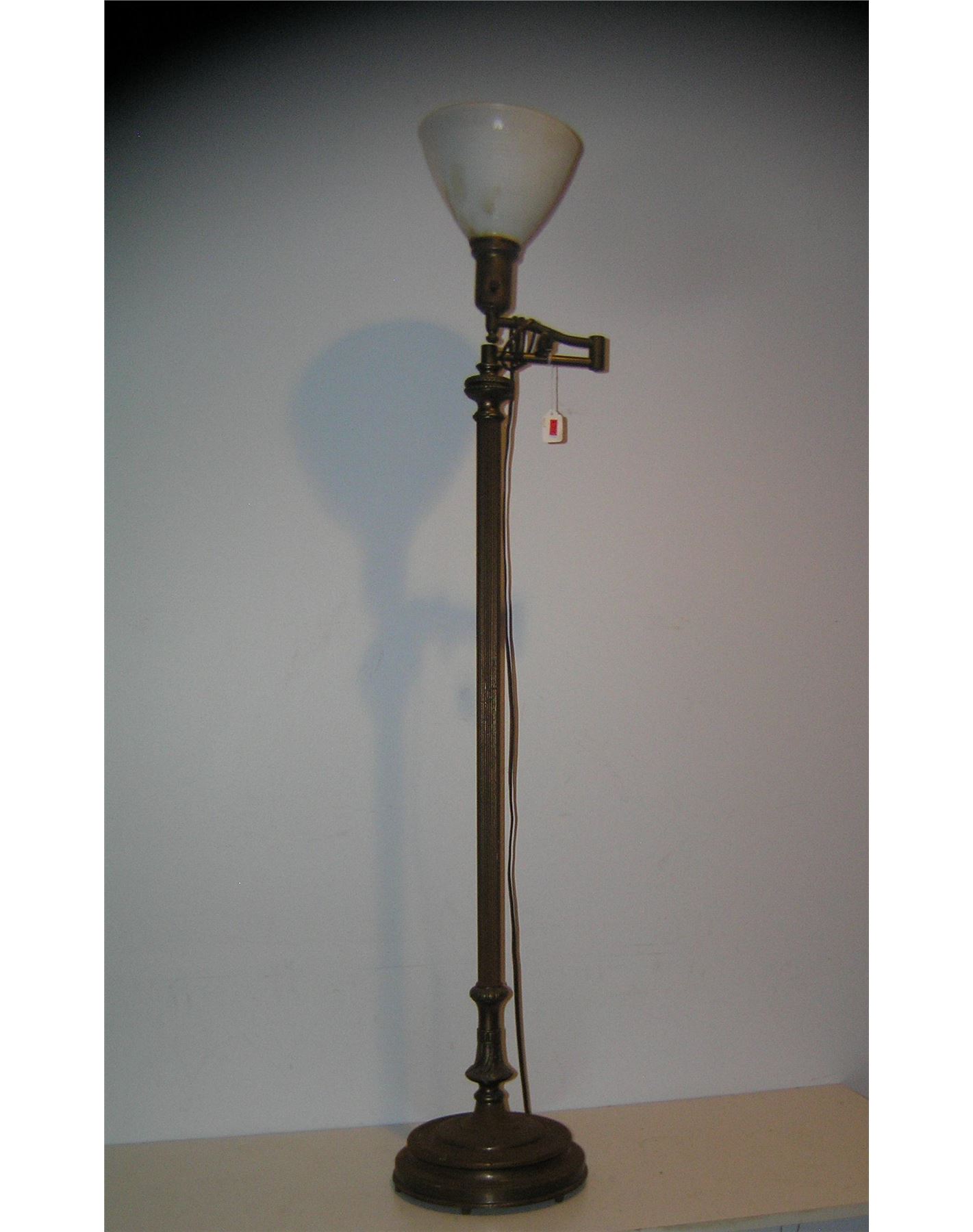 Antique floor lamp with milk glass shade circa 1930's steel, brass and milk glass condition as found shows some surface rust est. value $100.00-$125.00