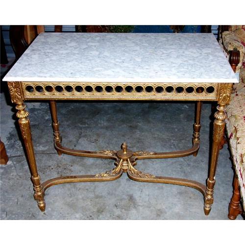 <tr><td>Title:Antique gilt table and marble style top</td></tr>