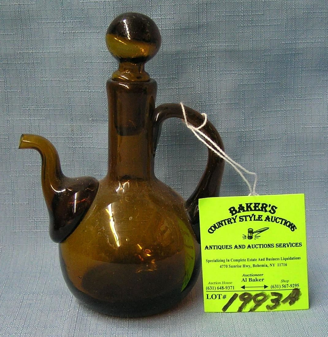 Antique hand blown glass pitcher with stopper est. value $40.00-$50.00