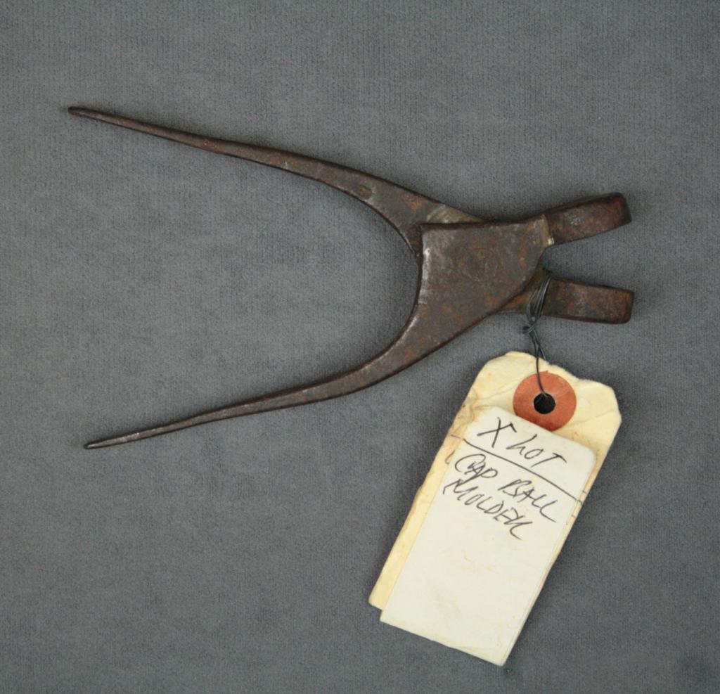 Antique iron bullet mould in well-used, uncleaned condition circa mid-1800’s. Est.: $20-$40.
