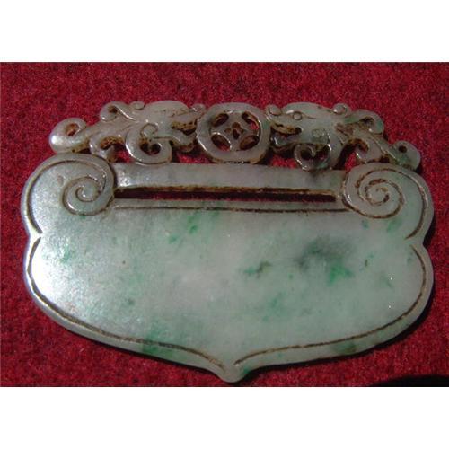 <tr><td>Title:Antique jadeite pendant with dragons design</td></tr>