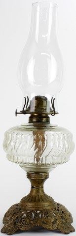 font on ornamental cast iron base in good working order with wick. Est. 50-100