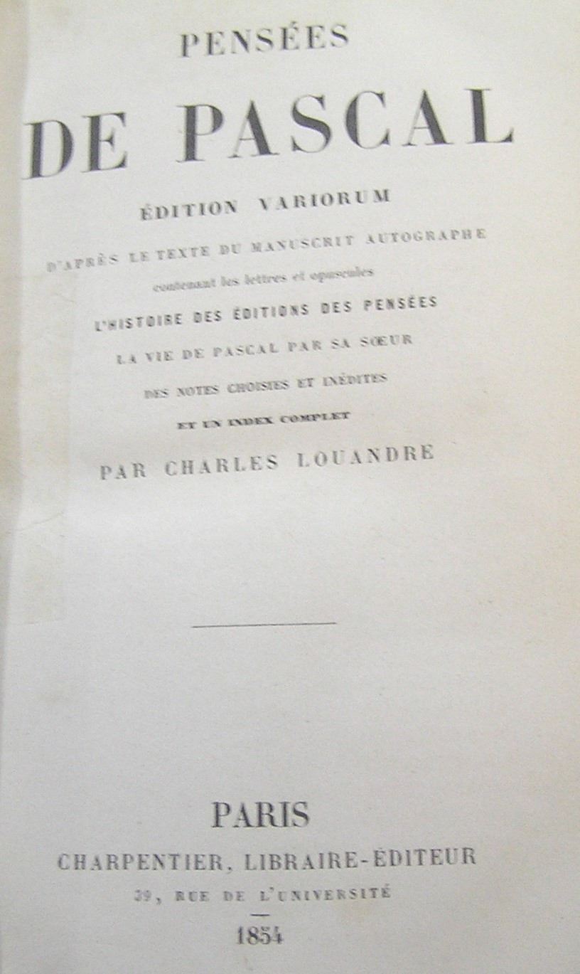 Antique leather bound book thoughts of Pascal 1854 est. value $150.00-$200.00