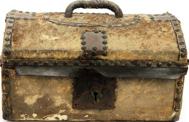 with original Robert Burr Trunk Manufacturer label intact., 12" X 7" X 6". Est. 100-200