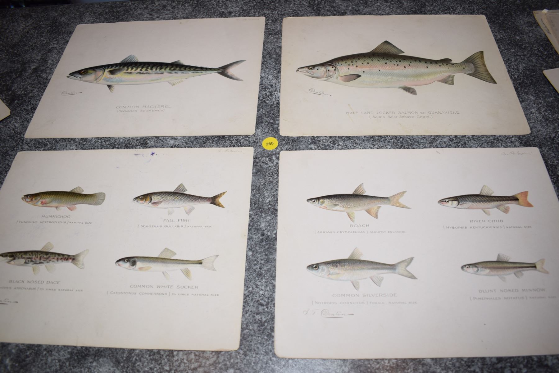 Antique lot of 4 Denton fish prints - 12" X 9.25 & signed c.1895