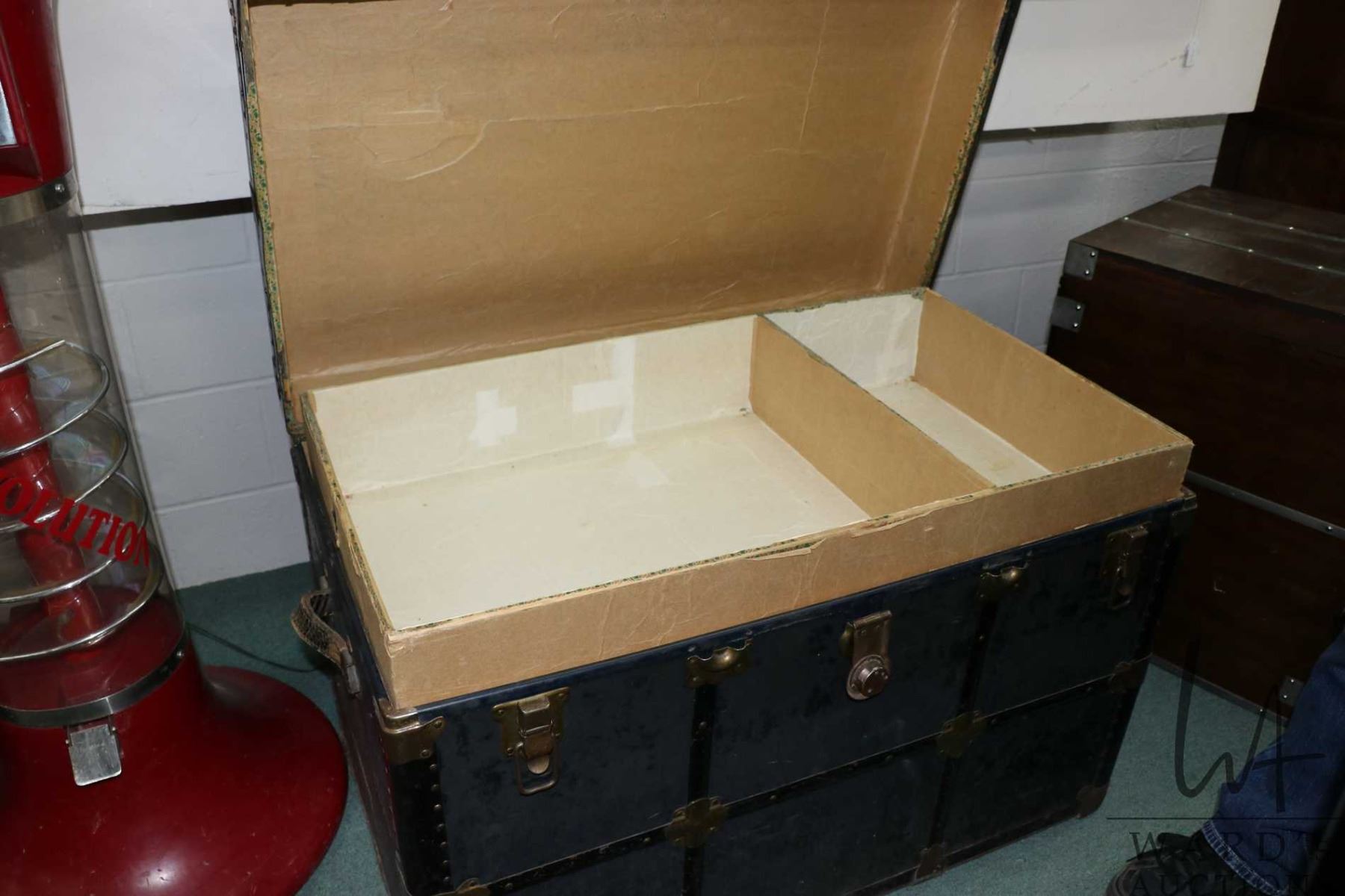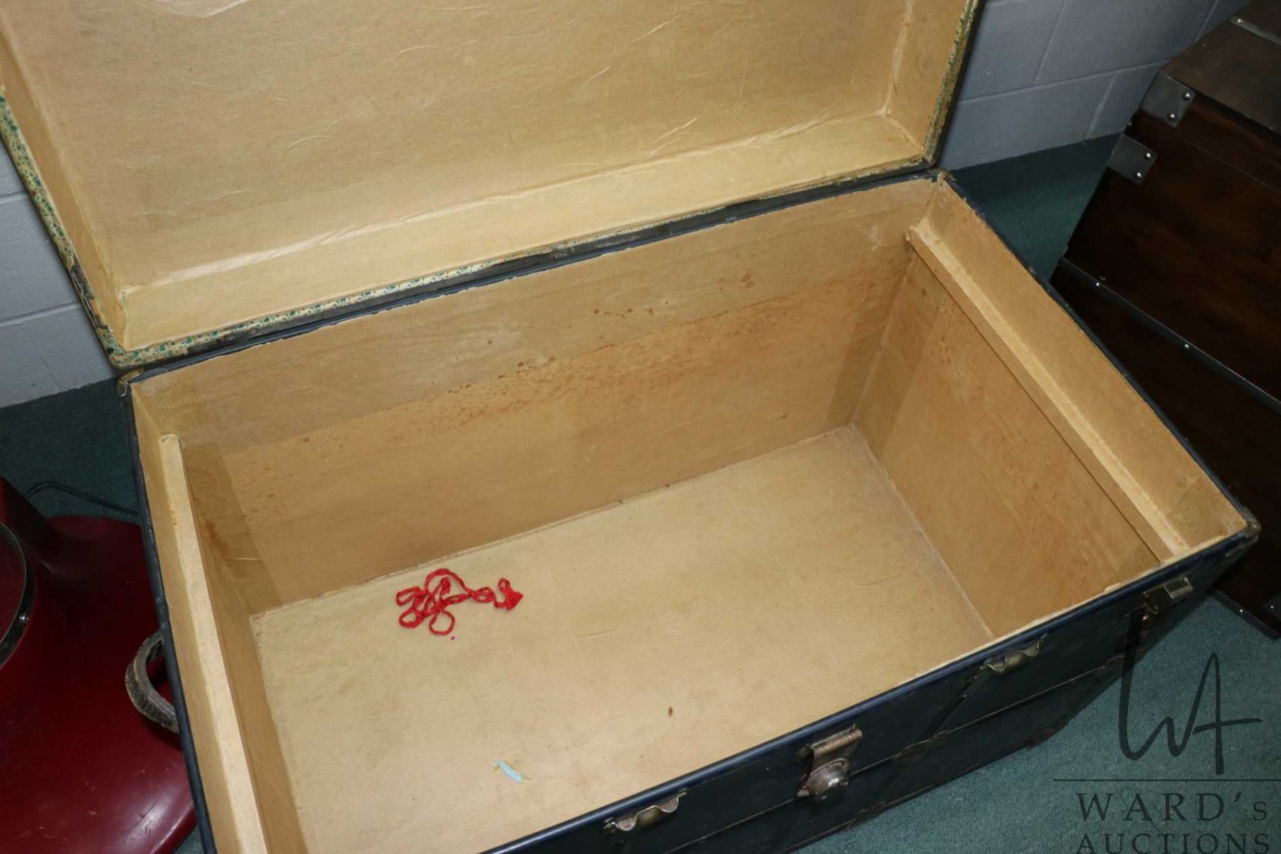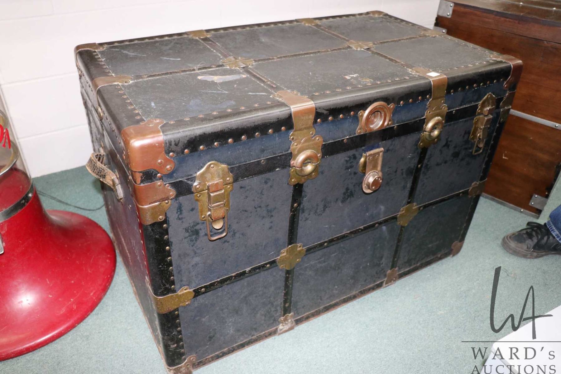Antique metal bound steamer trunk with removable tray, 24" X 38" X 22"