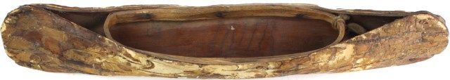 nicely constructed from one piece of bark and bentwood nailed in frame, Great patina, inner bottom shows crudely etched design. Est. 200-400