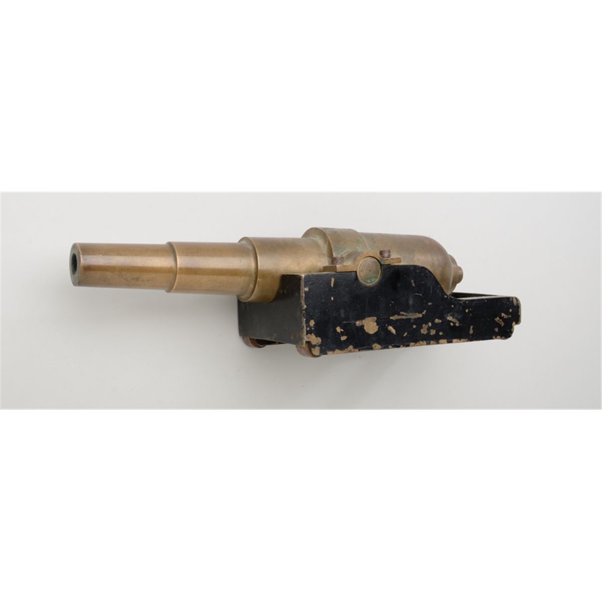 Antique miniature bronze Naval type cannon on base, approx. 13” overall barrel length in overall good uncleaned condition showing considerable original black paint remaining on the base; heavy casting and circa late19th/early 20th century. Est.: $400-$800.