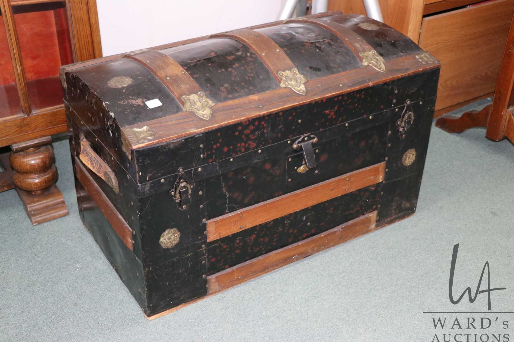 Antique oak bound dome top steamer trunk 17" H X 29" X 17" . Note: Not available for shipping. Local pickup only