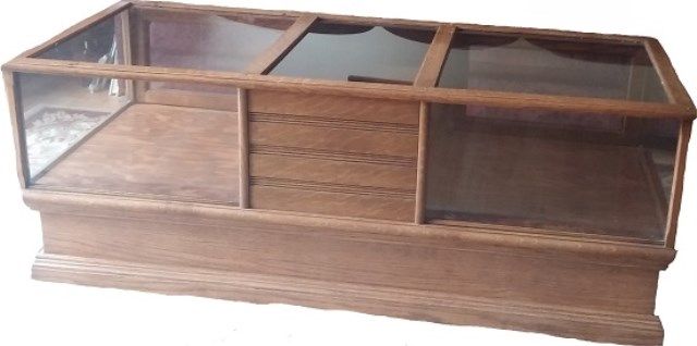 top model, divided left and right side with rear access doors, center with pull out lower cash drawer, 52" X 22" X 19". Est. 500-900