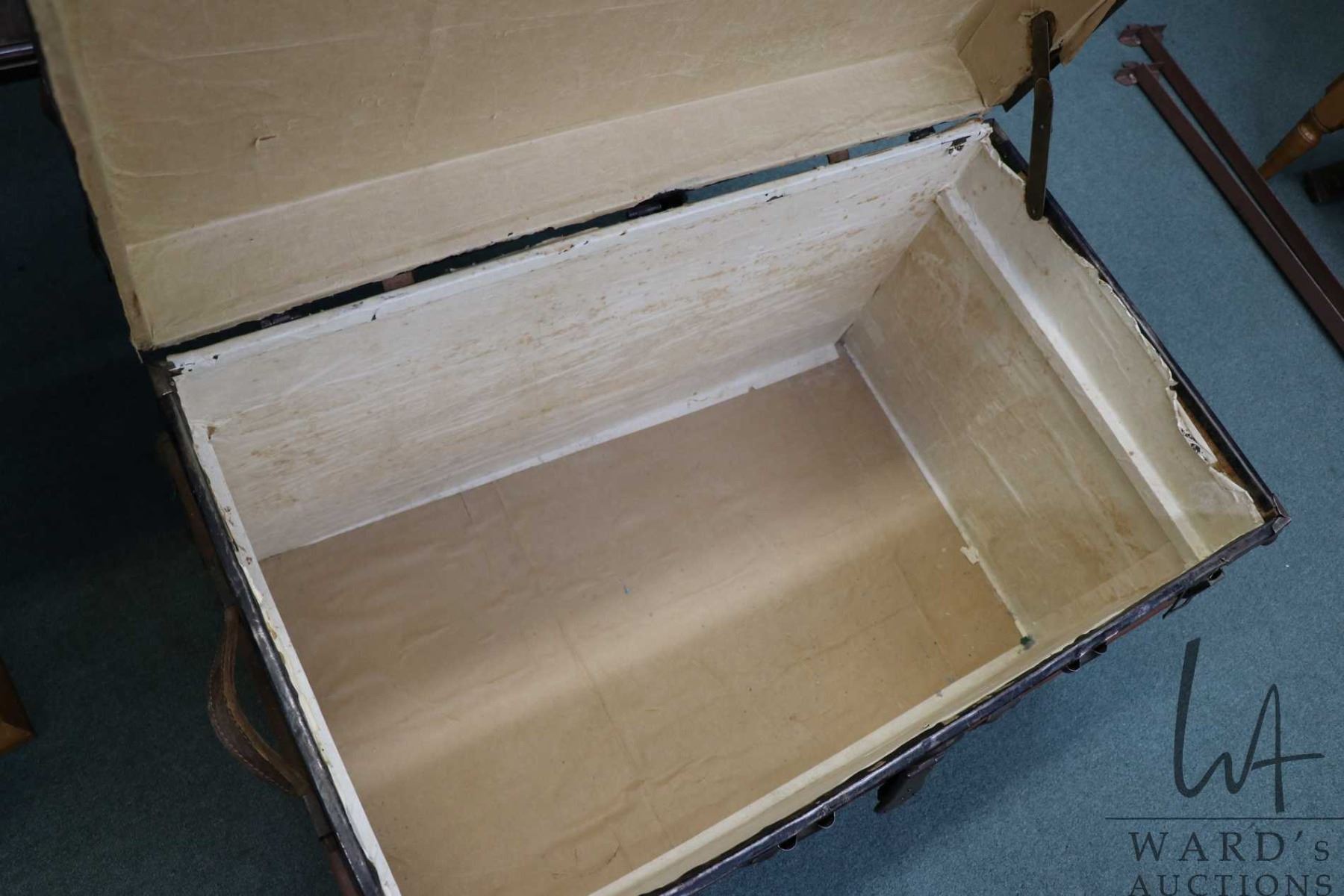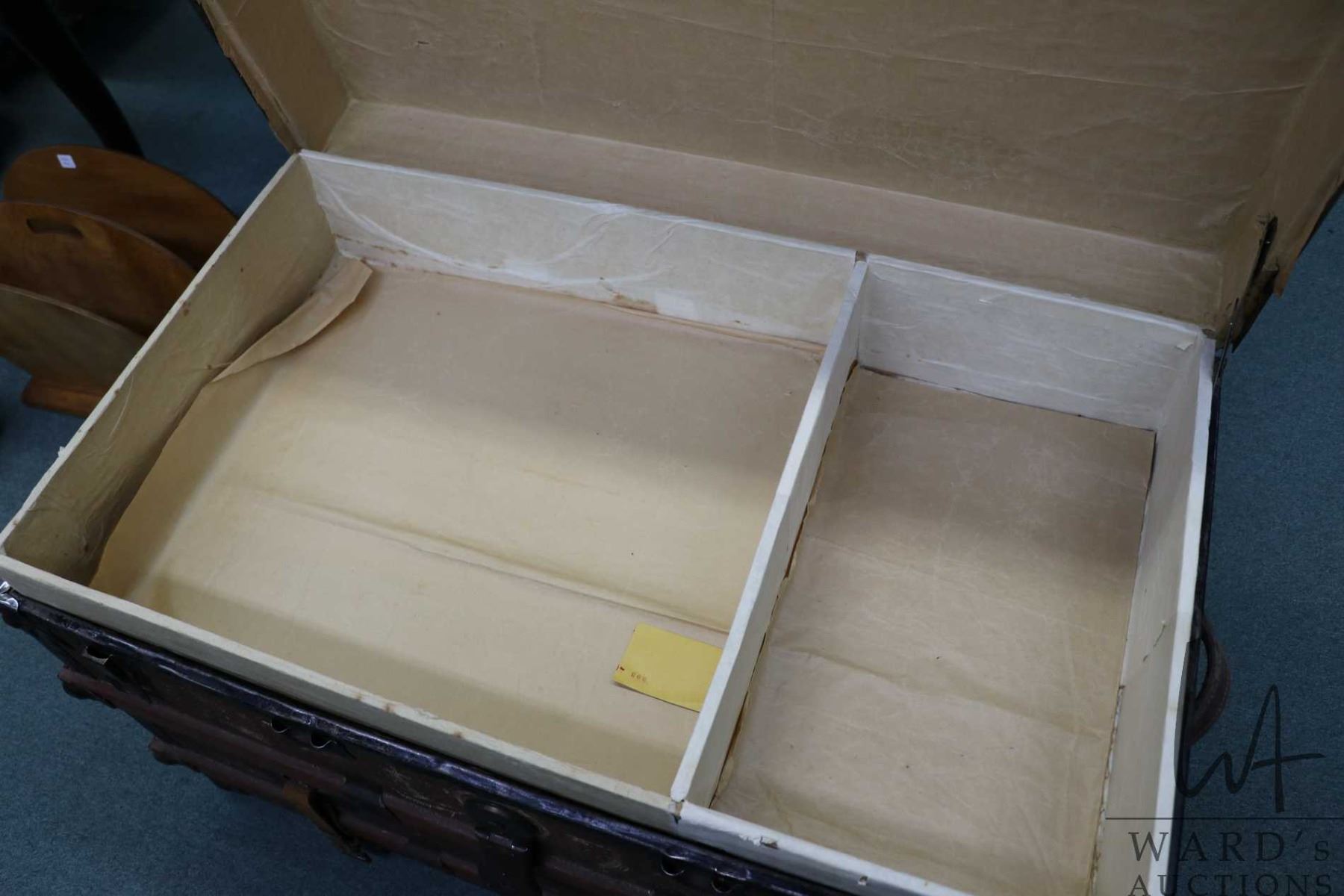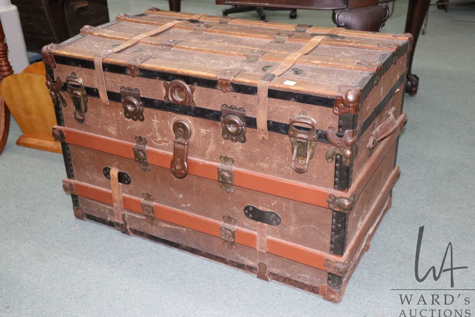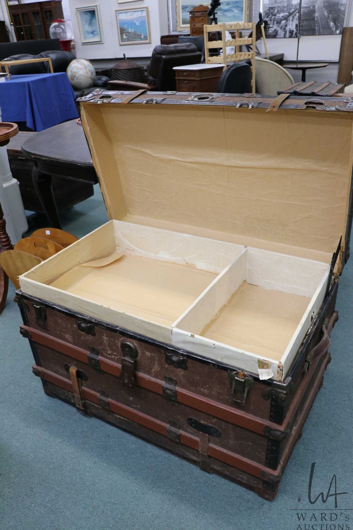 Antique oak, metal and leather bound steamer trunk with removable tray, 24" X 36" X 22"