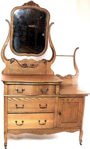 serpentine top, 3 drawers and single door cabinet, 21" X 41" X 70". Est. 300-600