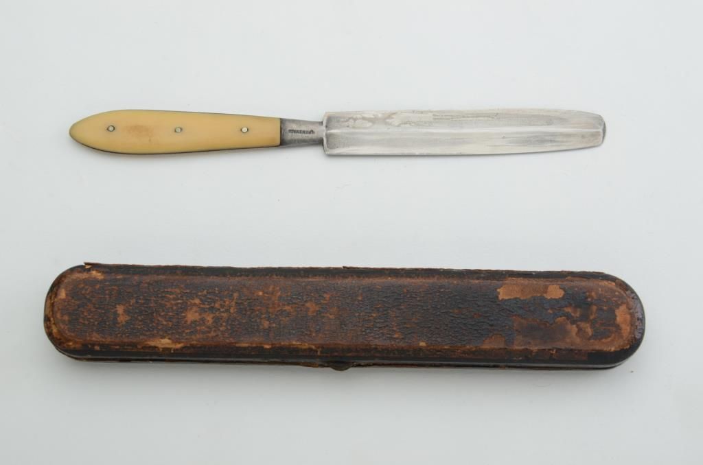 Antique page splitter with ivory grip in case, overall good condition, G. Grunewald, maker. Est.: $100-$150.