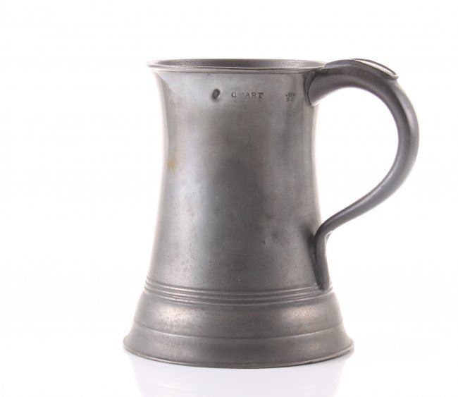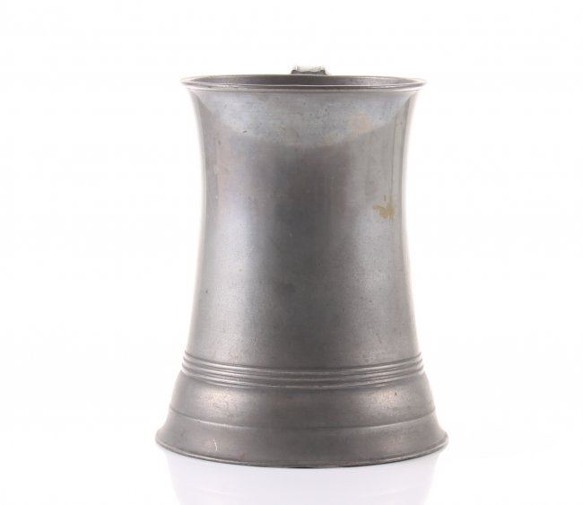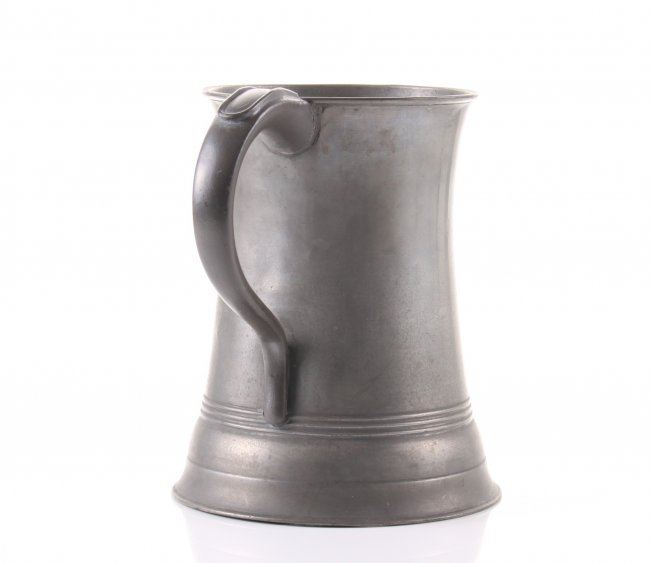 Antique pewter quart size mug. SIZE: see attached ruler photo. Photos are part of the description representing the condition report and can be used for authentication prior to the sale date. Pangaea Auctions urges Bidder's to view all attached photos in detail.
