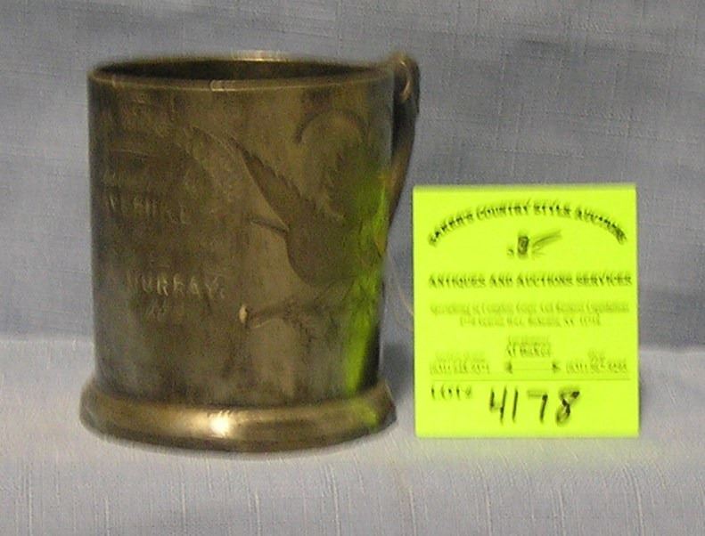 Antique 3 inch quality silver plated pewter presentation cup to the champion clog dancer dated 1883 very ornate carved presentation cup $300.00-$350.00