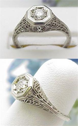 Antique ring filigree with diamond approx .45Ct 14kt white gold