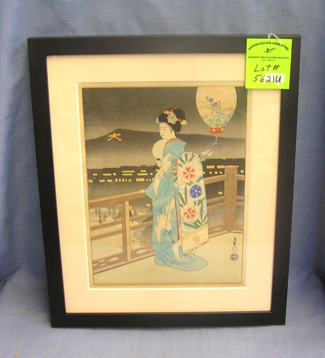 Antique signed Japanese wood block print est. value $350.00-$400.00