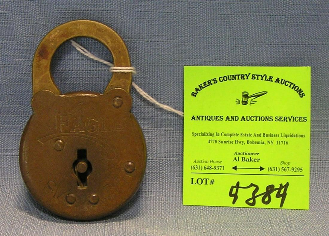 Antique solid brass padlock six lever by eagle dated 1914 $75.00-$100.00