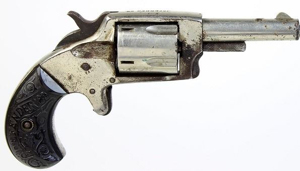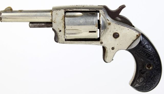 revolver with original nickel finish, gutta percha grips with very good functioning action.
