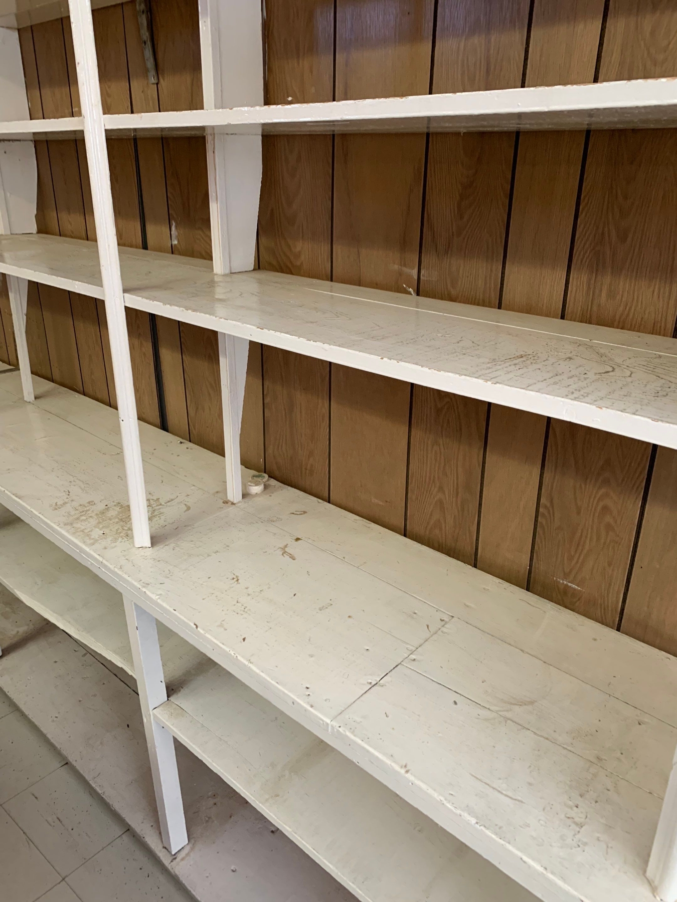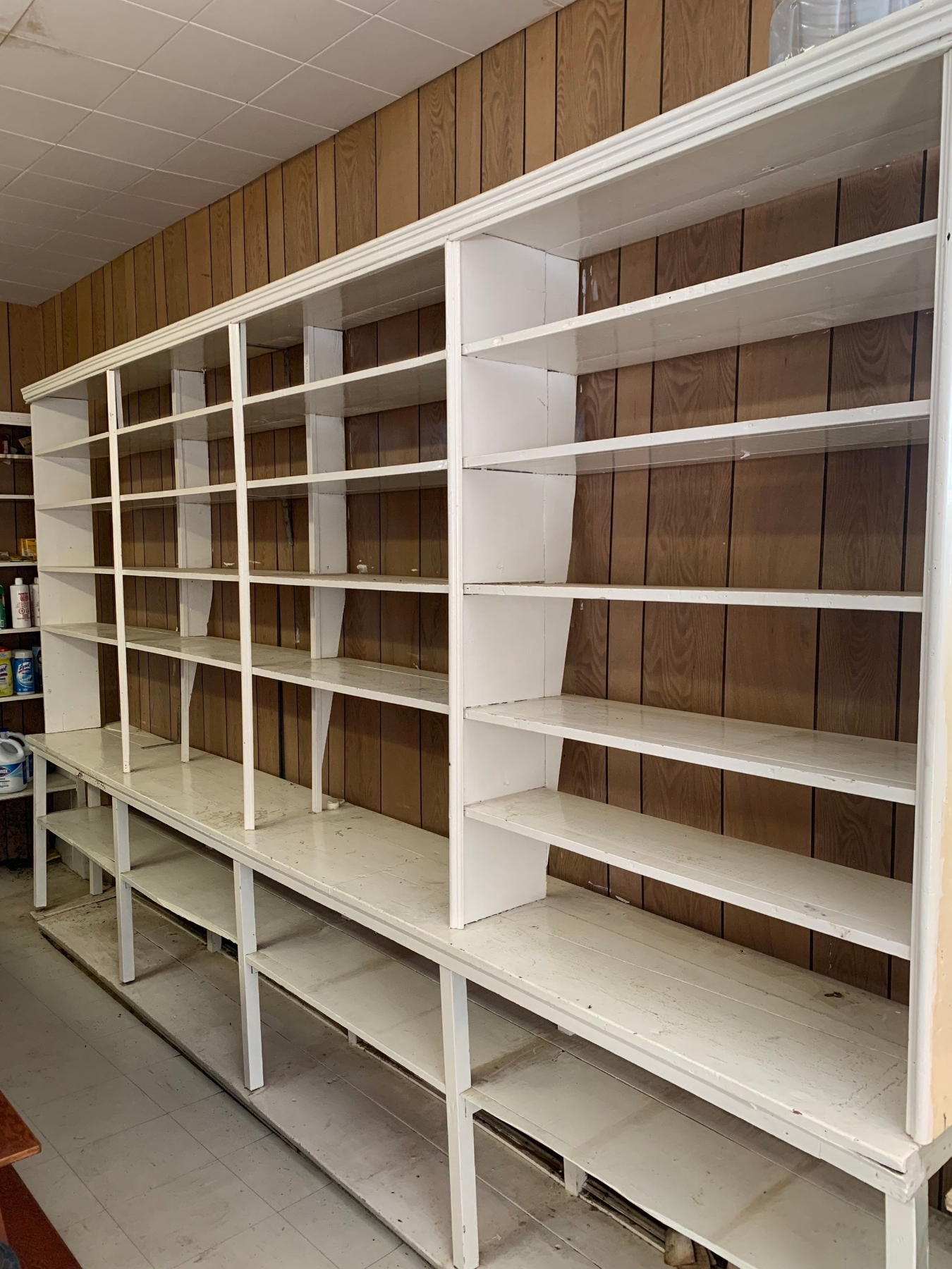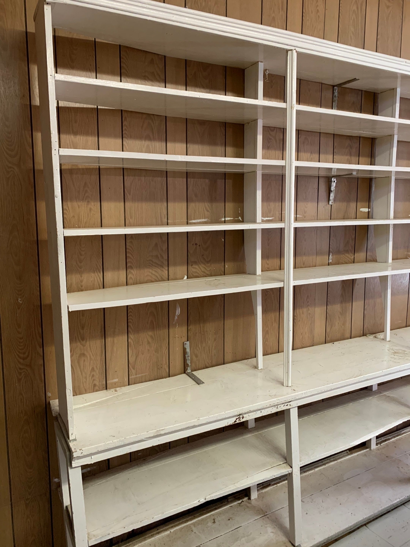 Antique store display shelf 153”L, 17”W, 92”T buyer must be able to disassemble and remove themselves