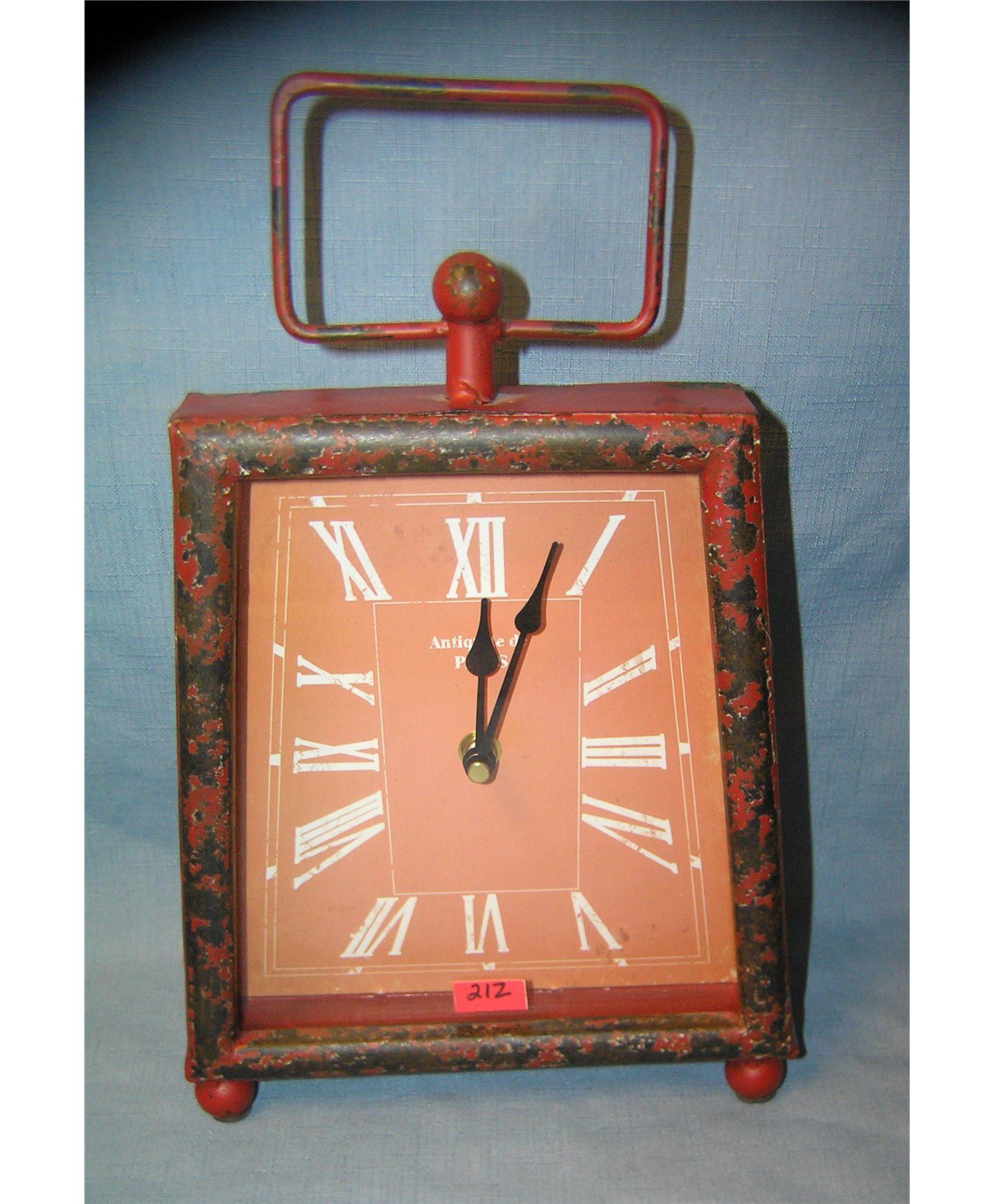 Antique style all metal Paris mantle or table clock est. value $40.00-$50.00