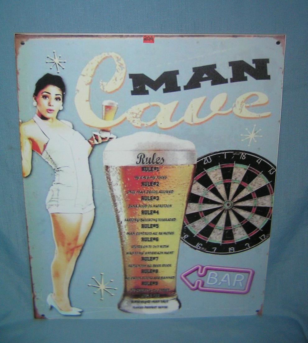 Antique style retro quality Man Cave advertising sign large 16 inches by 20 inches est. value $125.00-$150.00