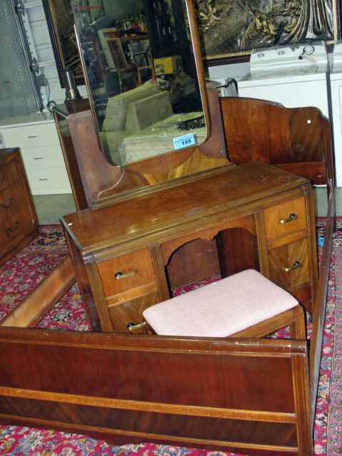double size bed(headboard footboard rails) vanity with bench seat and highboy dresser