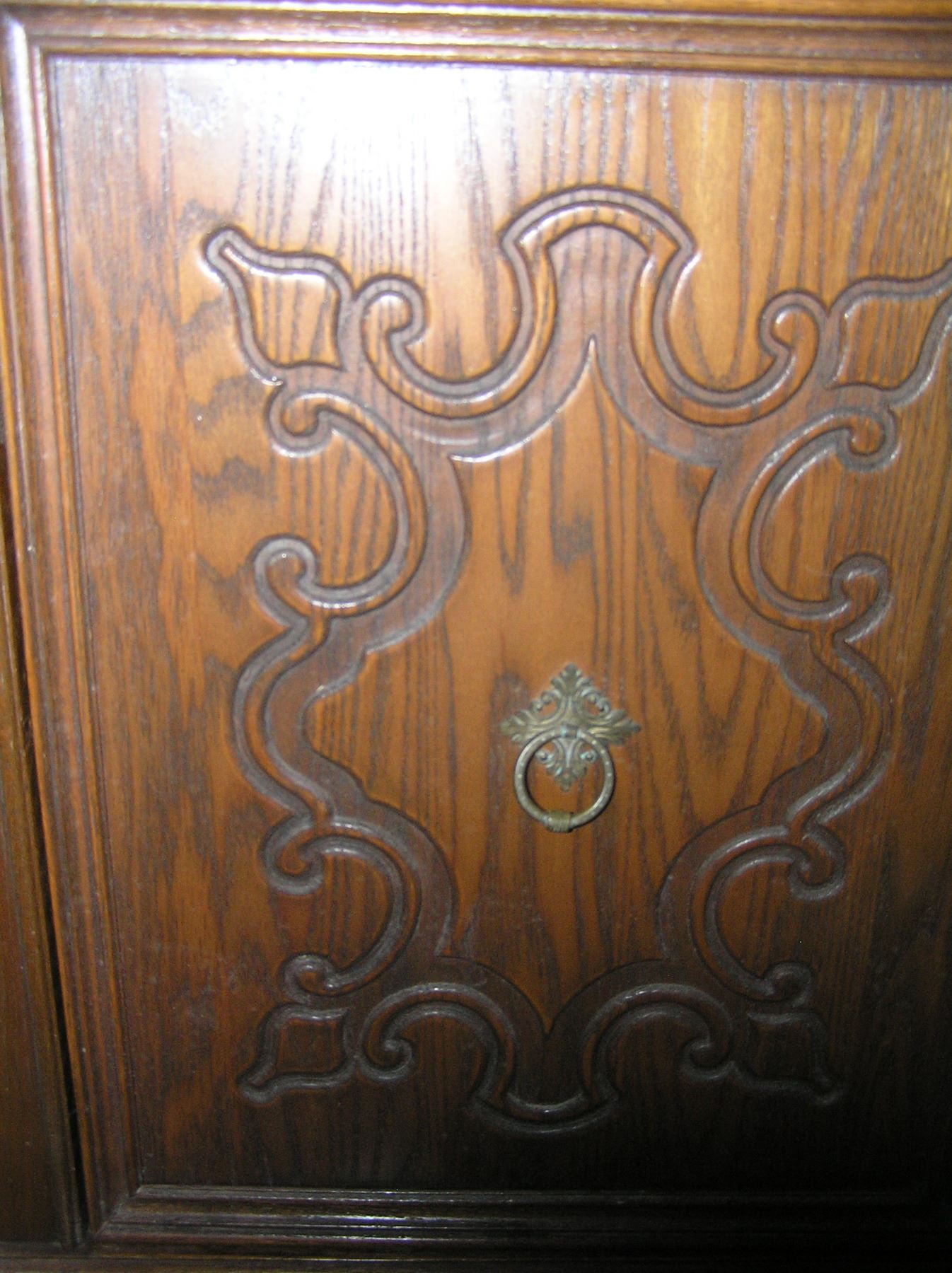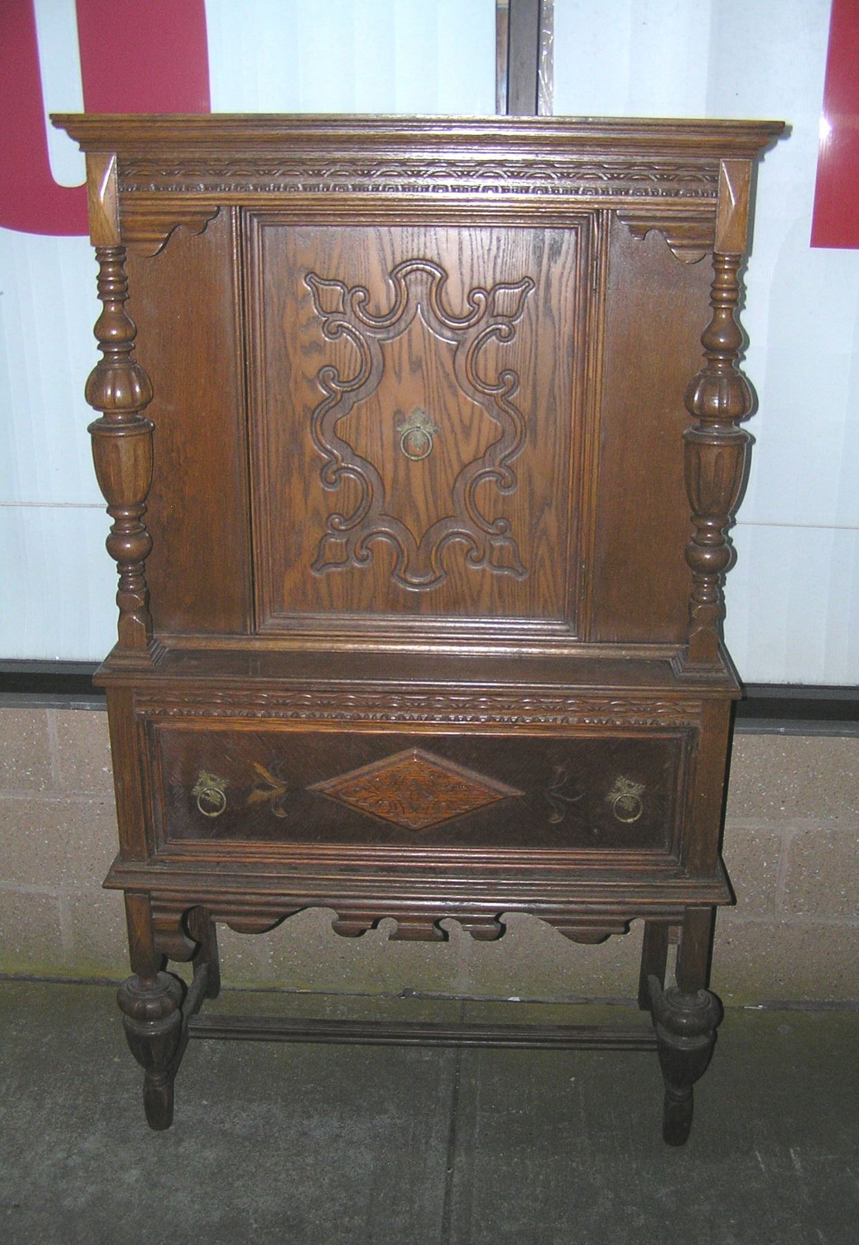 Antique walnut curio cabinet heavily carved circa 1930's est. value 400.00-500.00