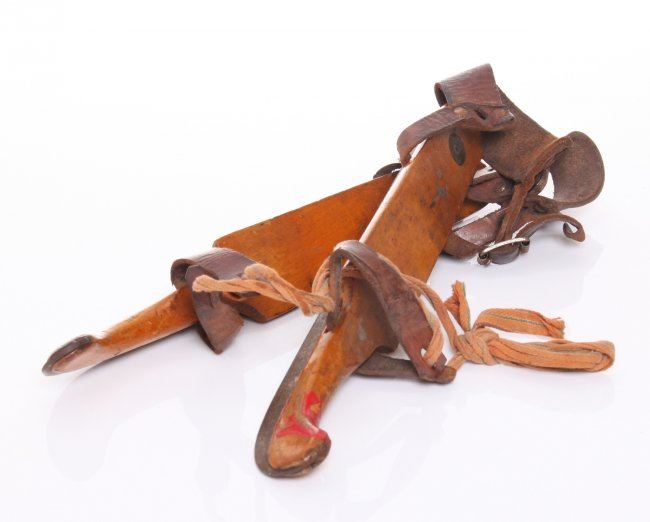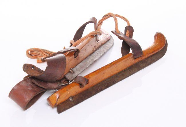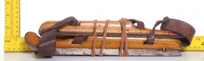 Antique wood and iron ice skates. SIZE: see attached ruler photo. Photos are part of the description representing the condition report and can be used for authentication prior to the sale date. Pangaea Auctions urges Bidder's to view all attached photos in detail.
