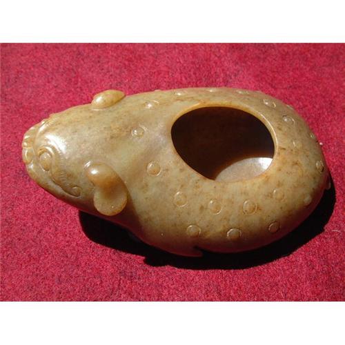 18th. century jade carving in shape of a 3 legged toad that in Chinese mythology is bringing luck to the owner. This is a masterly hand carved jade with minute details in shape of a container probably used by a scholar for brush cleansing. Provenance: Dr. Veleanu's jade collection, the author of the collectors textbook: "Jade 5000 BC to 1912 AD". Estimated value: $3.000.