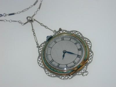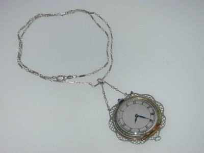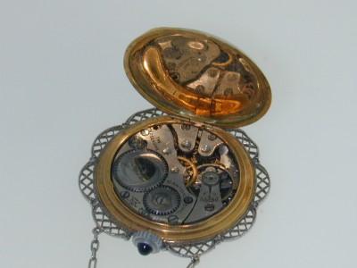 Antique 18K Gold Sapphire Diamond Watch from 1920.The total weight of watch is 21.3 grams.wieght of Sapphire: 7 pts.Total weight of diamond: 12 pts.The measurements of the watch are 35 x32 mm, 9 mm thick
