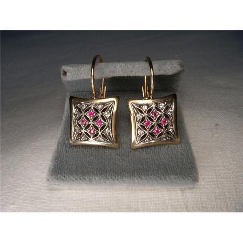 <tr><td>Title:Antique18K Pink Gold Rose Diamond Ruby Earrings</td></tr>