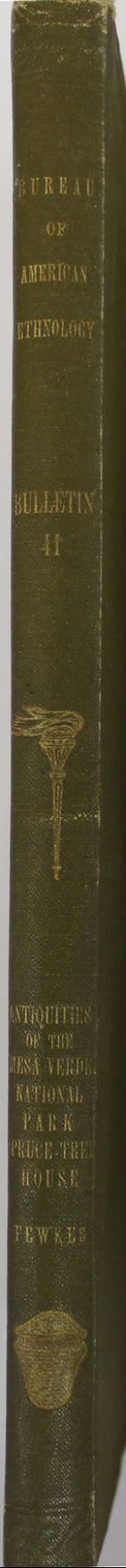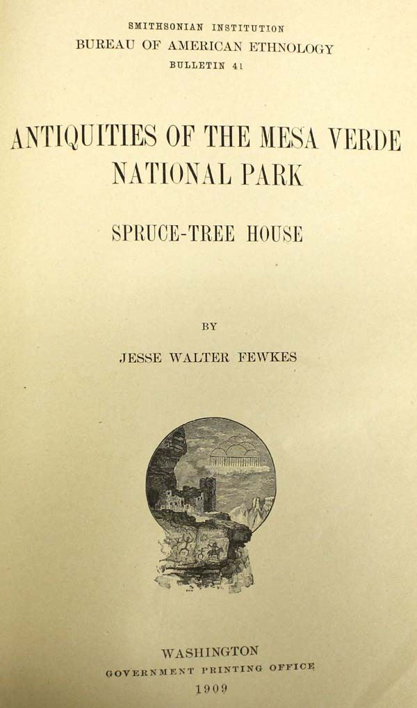 Antiquities of the Mesa Verde National Park: Spruce-Tree House by Jesse Walter Fewkes, Smithsonian Institution Bureau of American Ethnology Bulletin 41, hardback book c. 1909, Washington Government Printing Office, has address label inside of cover and stamped name, inside cover spine damage (1''L)
