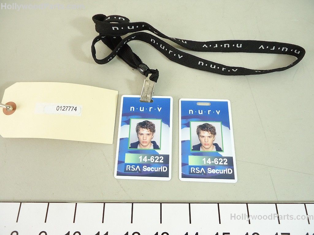Lot of 2 Nurv scanner I.D. security cards in blue, grey and green with photo of Milo. Used as employee identification at Nurv.