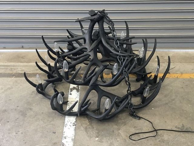 Black Antler Chandelier - 15 light bulbs Dims: 42"W x 24"H Condition: used/may have broken and/or missing parts