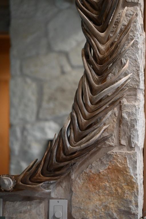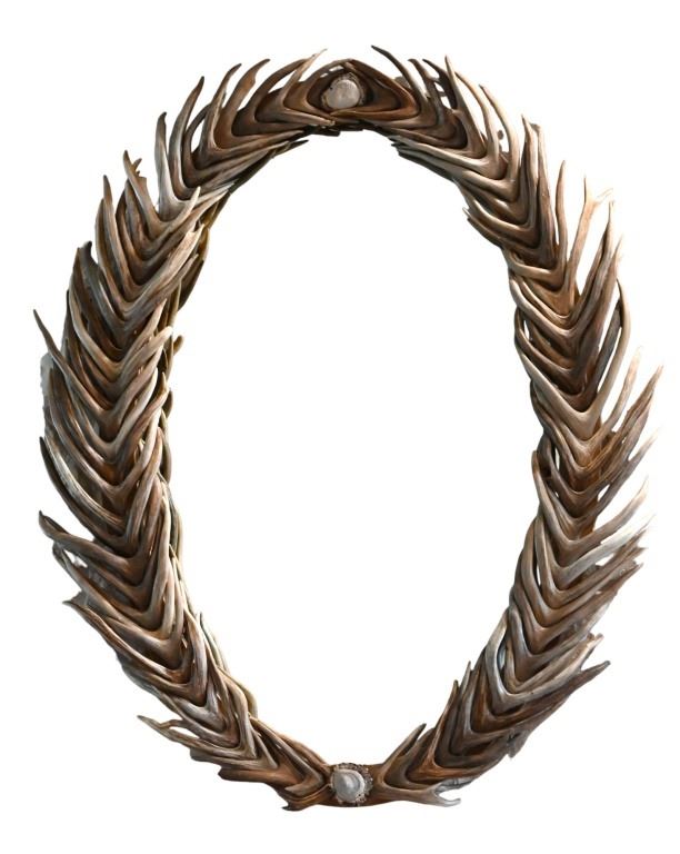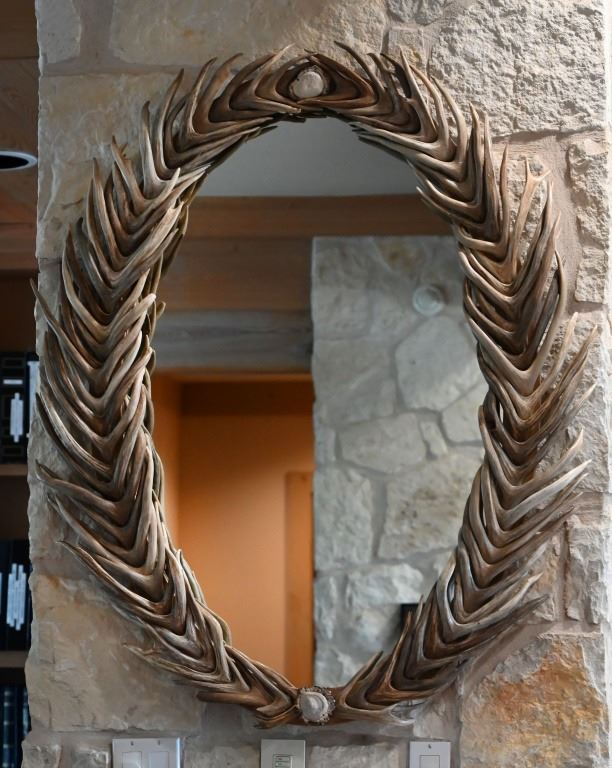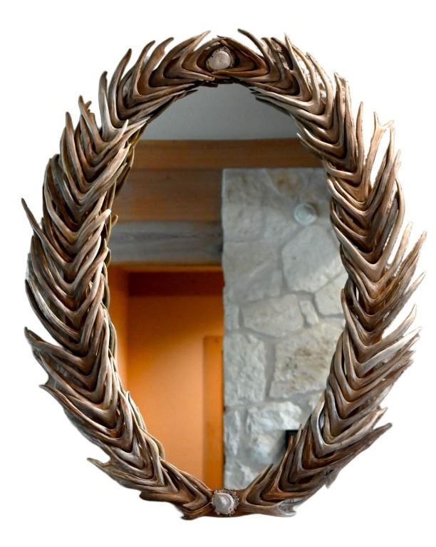 Overlapping deer antler framed oval mirror. Measures 36" x 46"