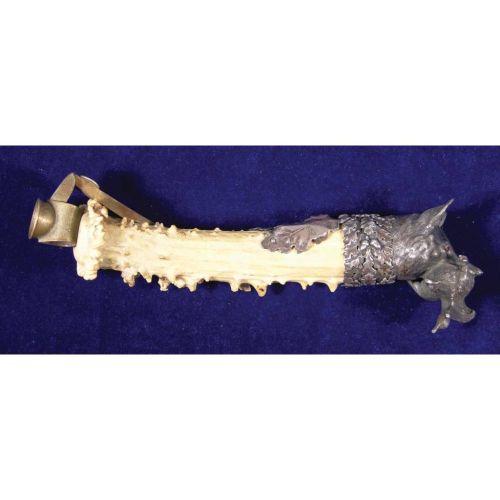 Antler Handled, Silver Plate Cigar Tip Cutter. Depicting fox with duck in mouth, glass eyes. Excellent condition. 7 inches long.
