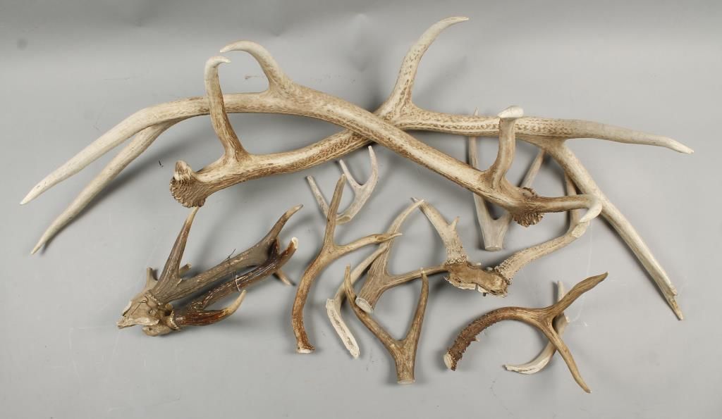 1 set of Elk Antlers 5 point, and various stag antlers.