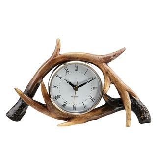 Antler Table Clock - 5"H 8.5"W 3"D - Resin - Battery Operated