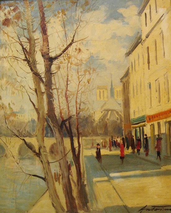 Antoine, French Art, , Figures in Paris, Oil on canvas, 60x50cm, Signed., , , , ,