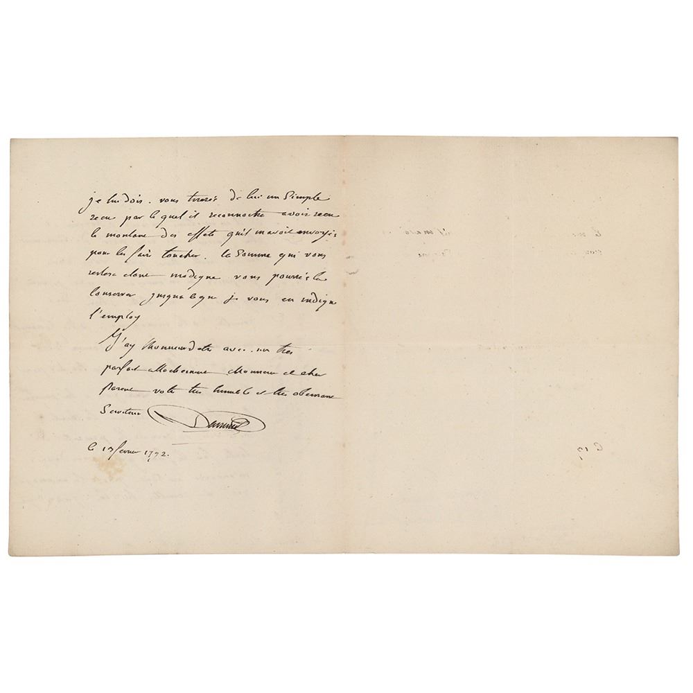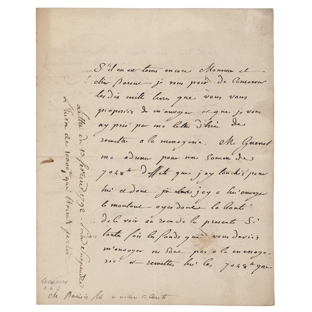 Rare ALS in French, signed "Lavoisier," one page both sides, 6.75 x 8.5, February 13, 1792. An untranslated handwritten letter. In very good to fine condition, with scattered light staining.