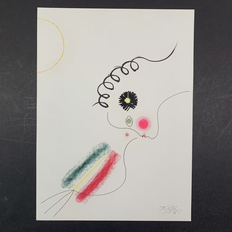 Anton Cetin original pastel on paper painting circa 1999, signed and dated lower right. This piece is of a woman with a rose and pink cheek and curly black hair. There are three lines underneath her in green, yellow and red. This piece is in excellent condition.