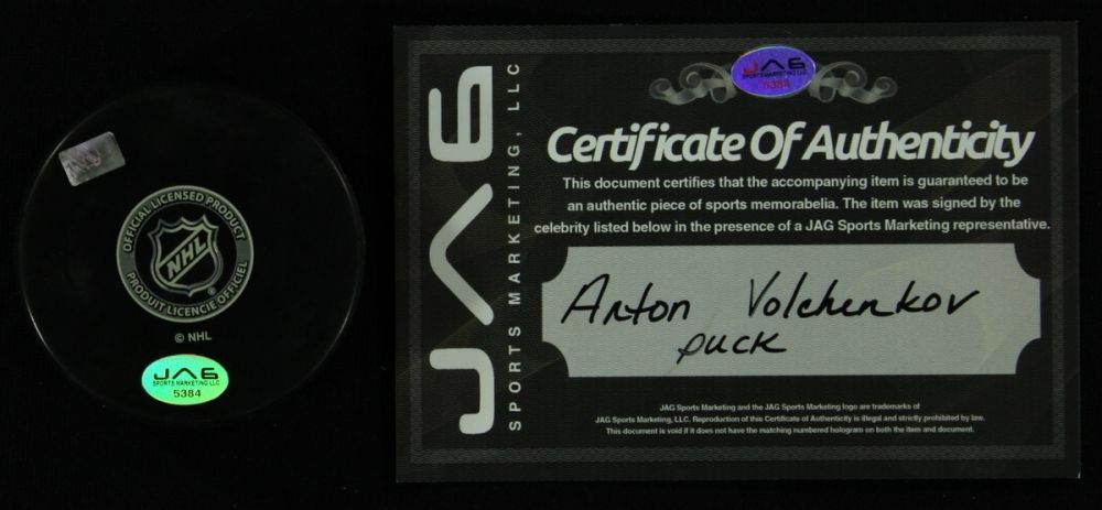 Anton Volchenkov Signed Devils Logo Puck (JAG COA)