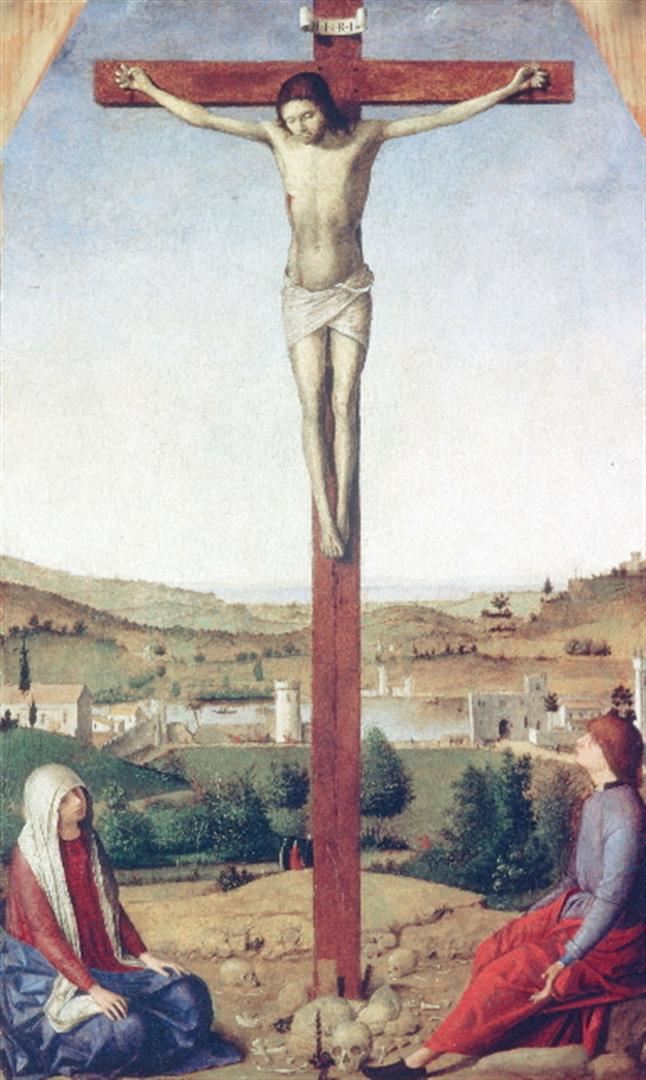 Artist:Antonello da Messina - Title: Christ Crucified - Medium: Fine Art Giclee on Canvas - Image Size: Approximately 20 inches x 12 inches - Unframed on Unstretched Canvas - Biography: Antonello da Messina, properly Antonello di Giovanni di Antonio, and Anglicized as Anthony of Messina (c. 1430 - February 1479), was a Sicilian painter from Messina, active during the Early Italian Renaissance. His work shows strong influences from Early Netherlandish painting, although there is no documentary evidence that he ever travelled beyond Italy. Giorgio Vasari credited him with the introduction of oil painting into Italy. Unusually for a south Italian artist of the Renaissance, his work proved influential on painters in northern Italy, especially in Venice.