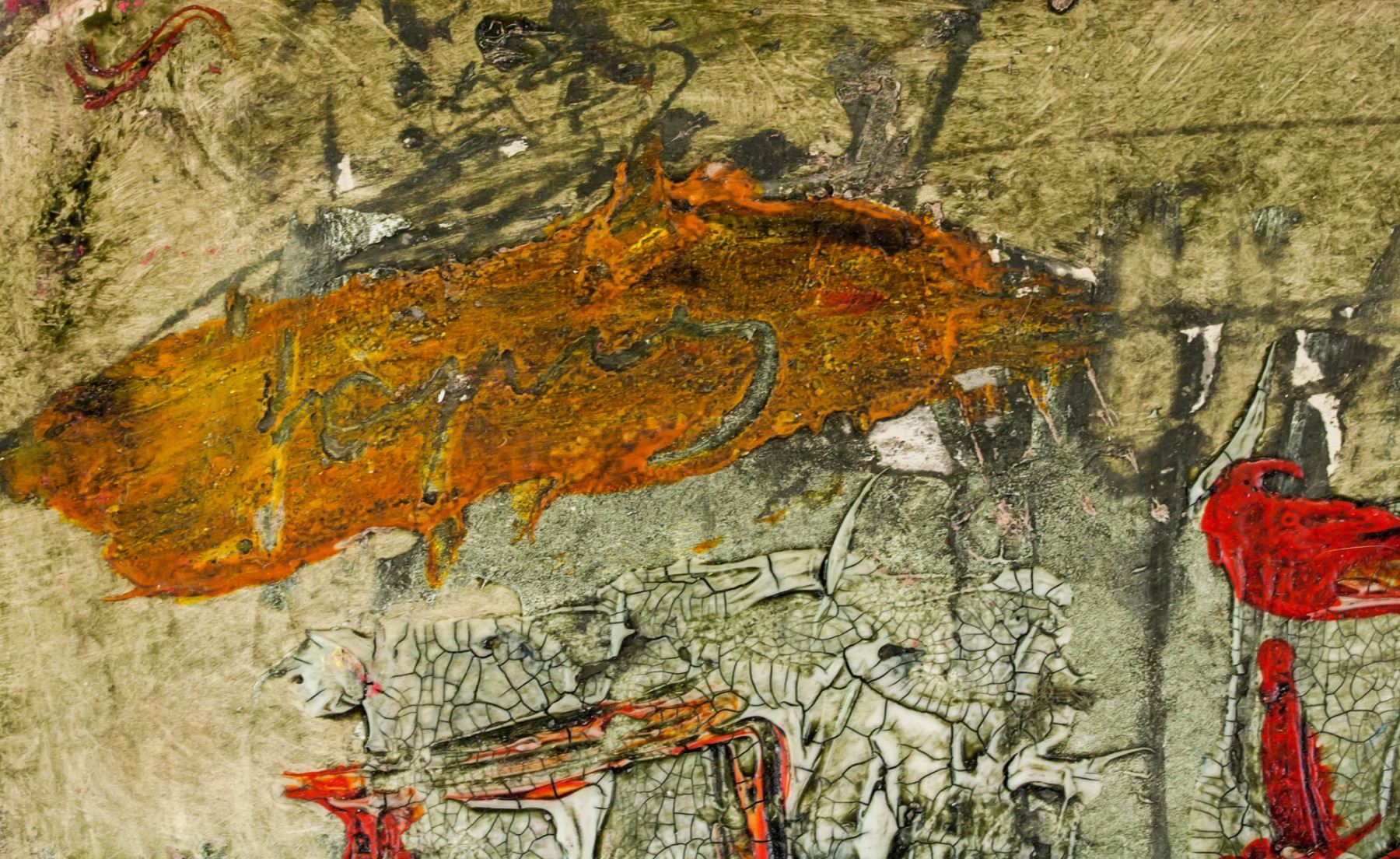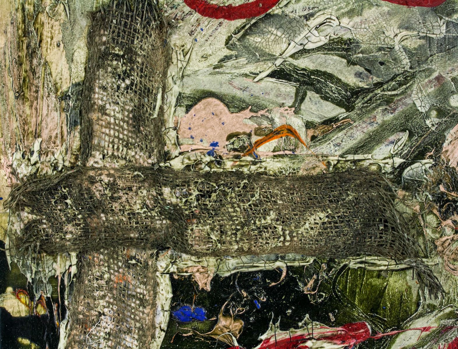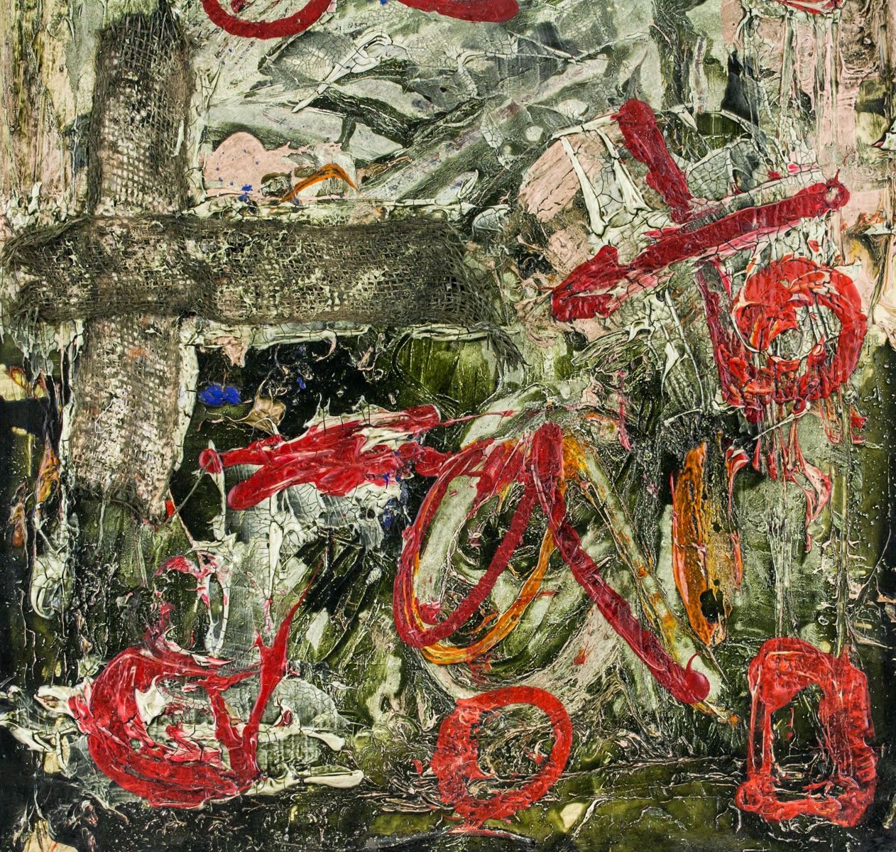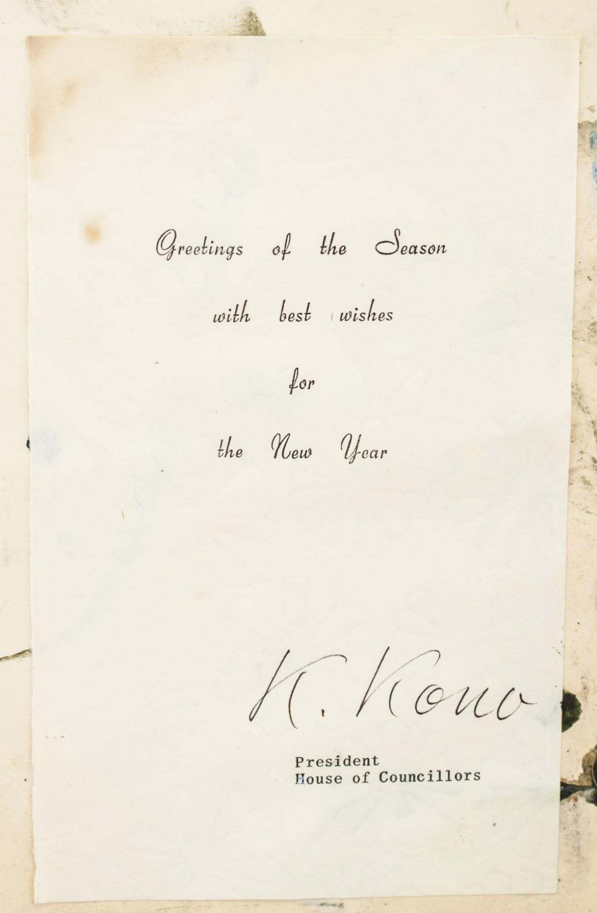 Mixed media on paper board. Catalog card label affixed to verso with illegible inscriptions. Another card with open card inscriebd Greetings of the Season with best wishes for the New Year, signed K Kona, President, Houes of Councillors. Attributed to Antoni Tapies (1923-2012, Spanish). 65.5 x 47 cm (25.8 x 18.5 inches)