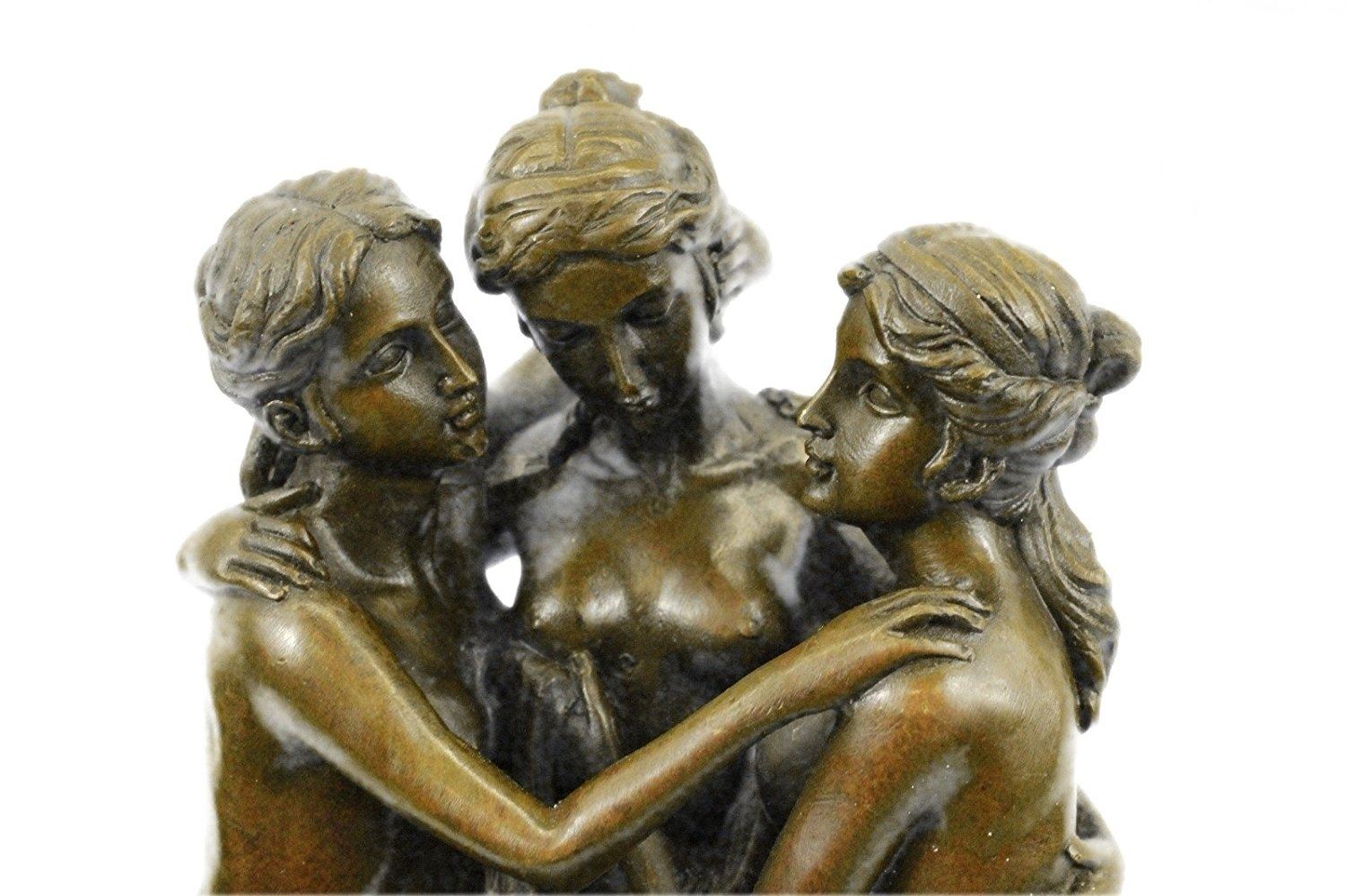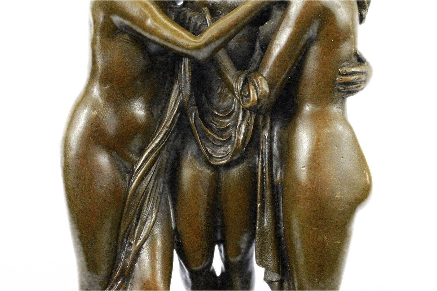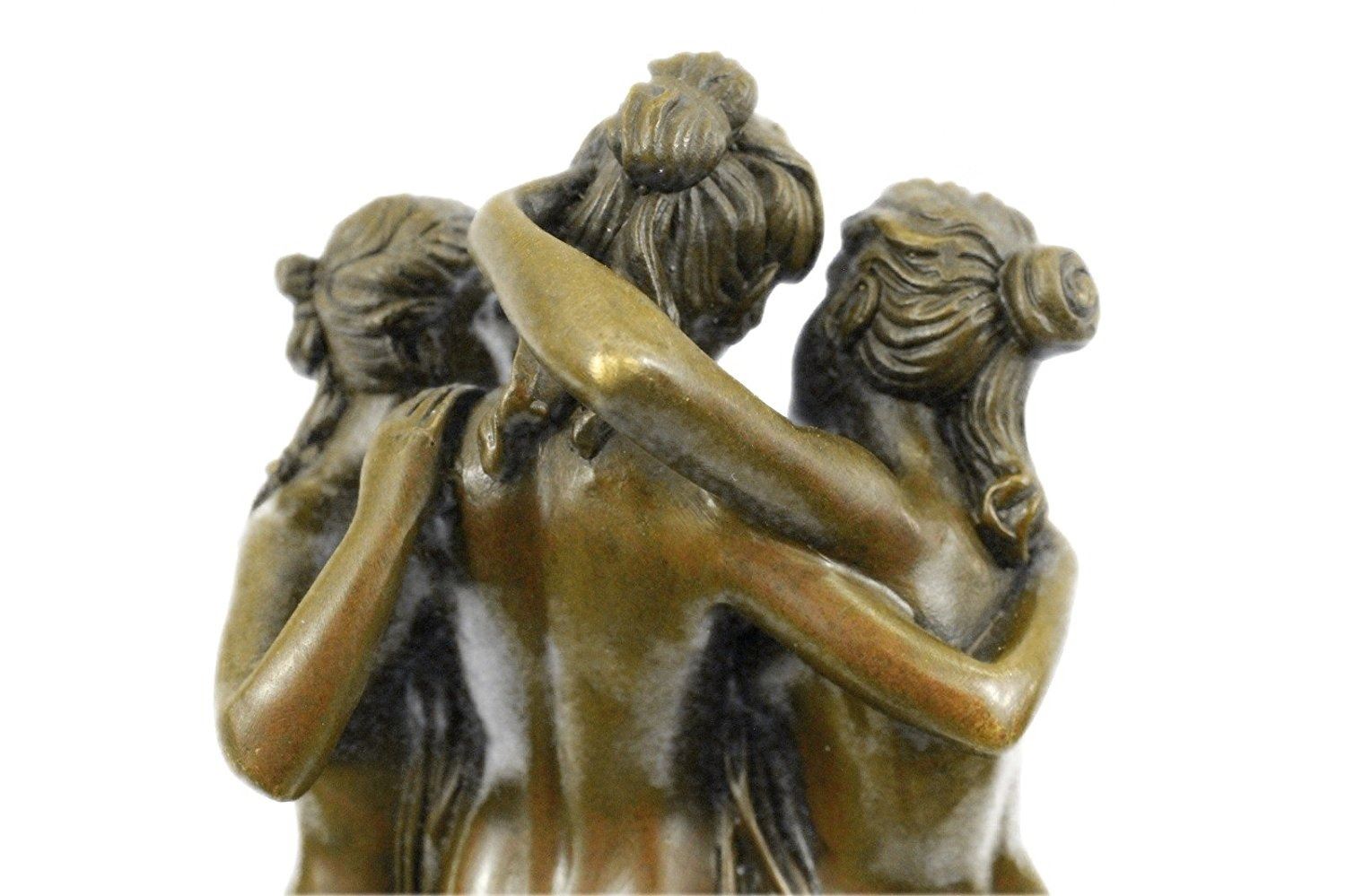 Three GracesIf only these three young beauties could talk! These three personifications of gracefulness from the Victoria Albert Museum in London were the constant attendants of Aphrodite, the goddess of love. Sculpted by the foremost Neoclassical sculptor in Europe, Antonio Canova in 1814, this sculpture exemplifies a common theme in art from this period a revival of mythological themes and classical ideals from Greco Roman antiquity. This sculpture will be a centerpiece of gossip as you admire it with your friends. Three GracesMade from solid bronze with a black marble base. Bronze Dimensions with Marble Base: Height 13 X Width 8 inches. Weight: 12 LBS. Inventory: 74DS0805347